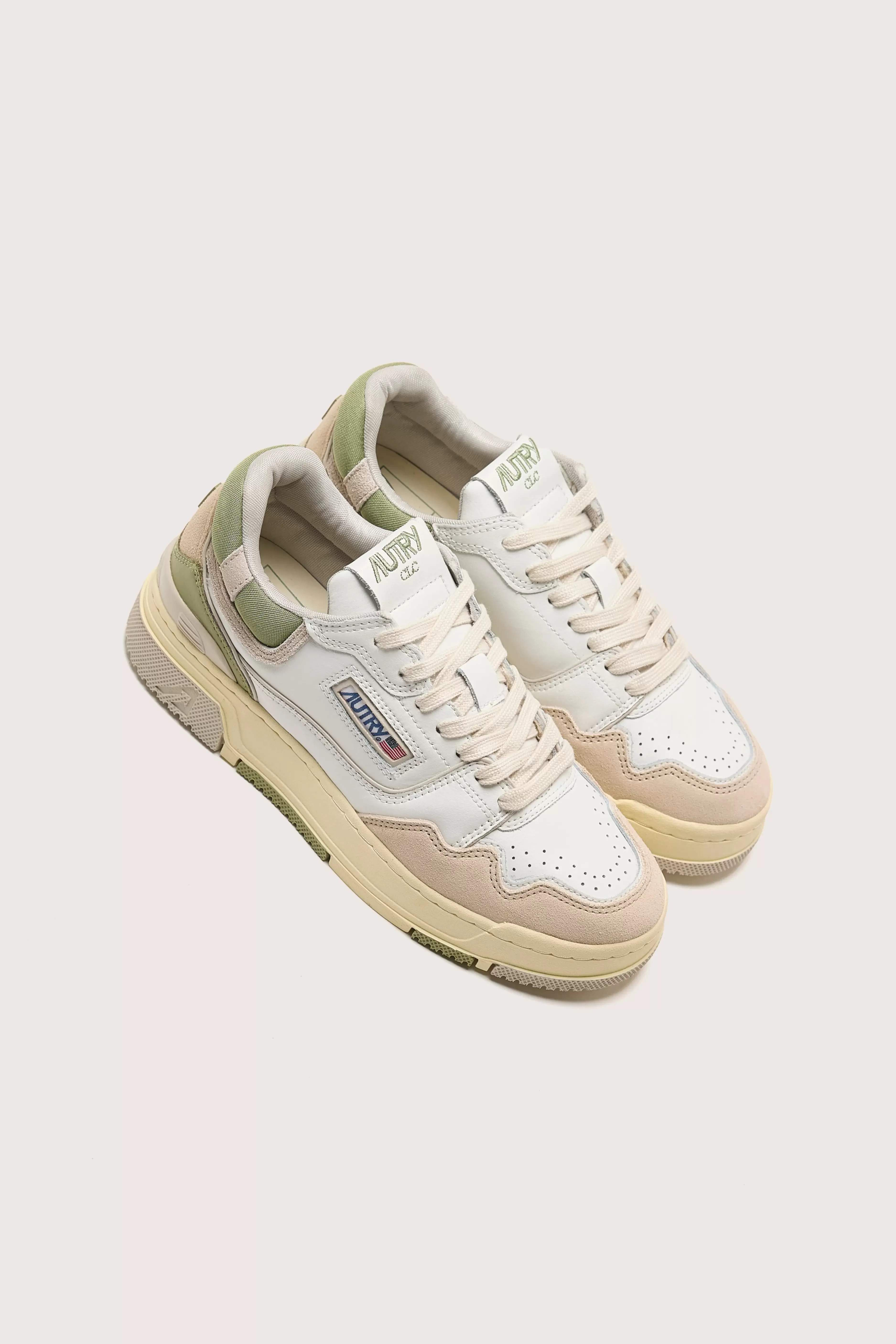 De Autry CLC Low zijn op basketbal geïnspireerde sneakers met een lederen en suède bovenwerk, een gewatteerde kraag van mesh en een verhoogde rubberen zool.