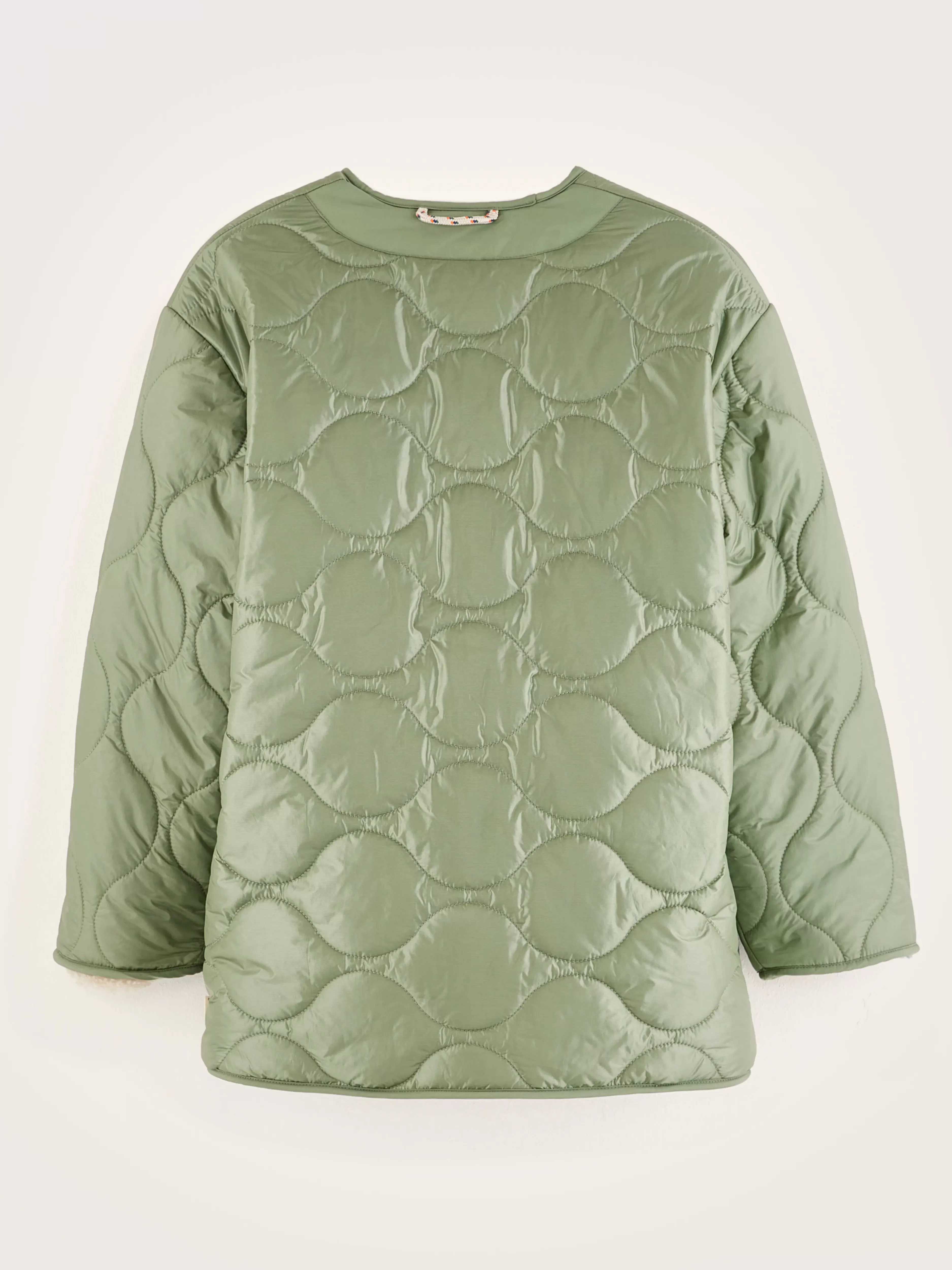 Omkeerbare oversizede jas van tie dye teddystof en met gevoerde look.Recht modelEén kant met bedrukte teddystofAndere k…