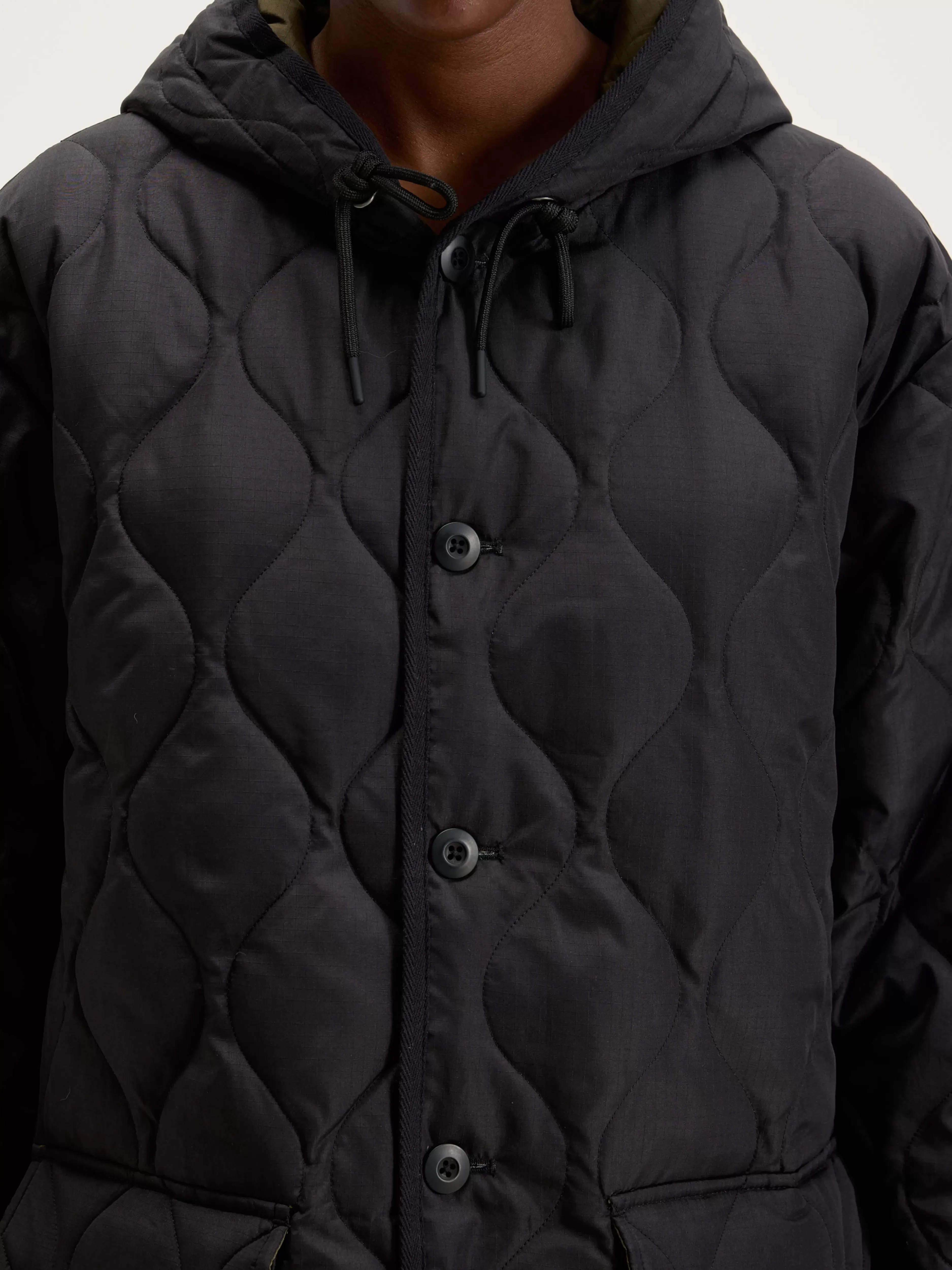 De lange militaire mantel met een kap van Taion past perfect bij lagen, met zijhandwarmerzakken en zijritsen in militaire stijl.