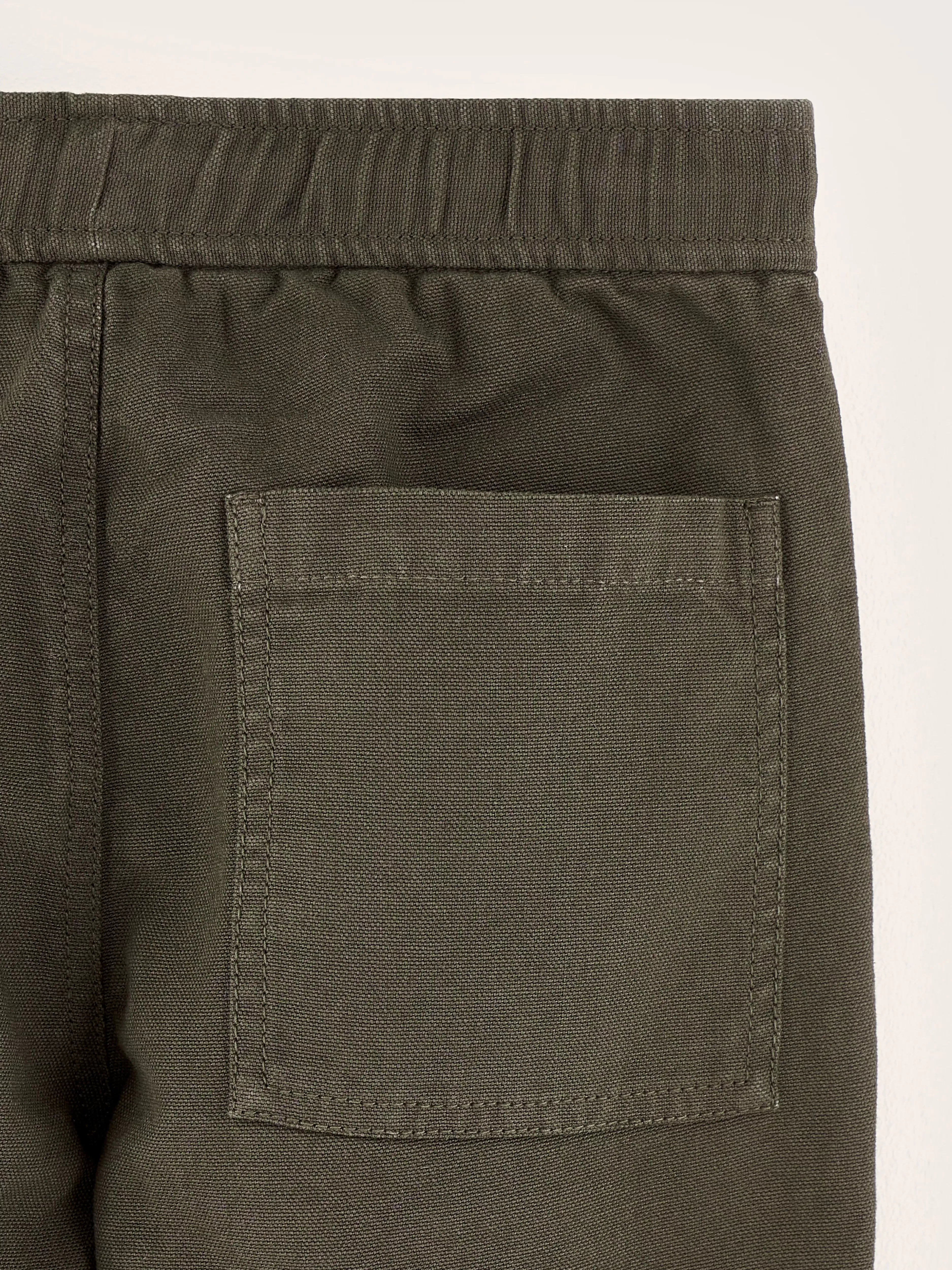Relaxede, legergroene baggy broek met wijde pijpen en fatigue zakken, van katoencanvas.Elastische taille met rijgkoordOp…
