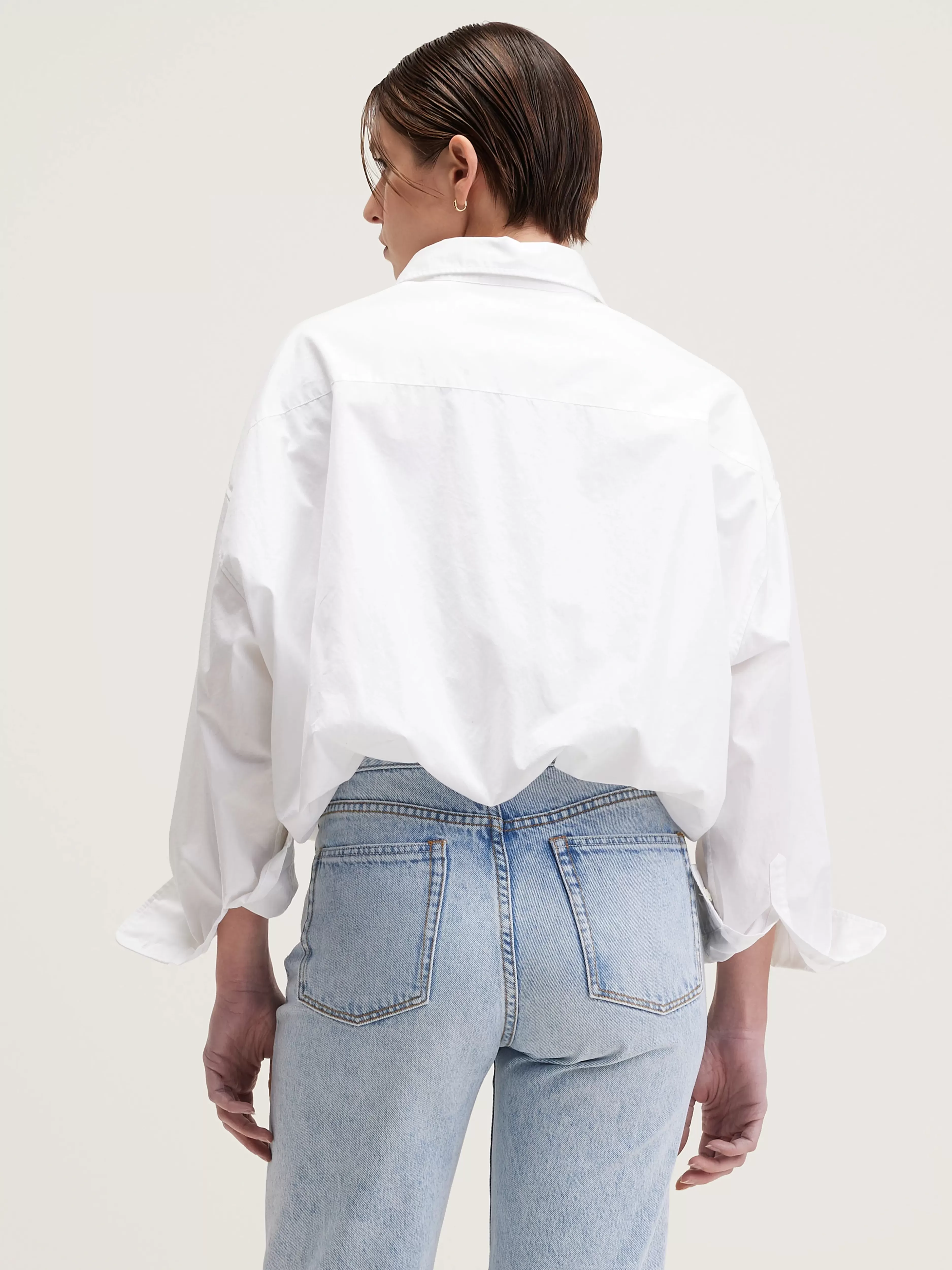 Volumineus overhemd van wit katoenpopeline met twee lagen.