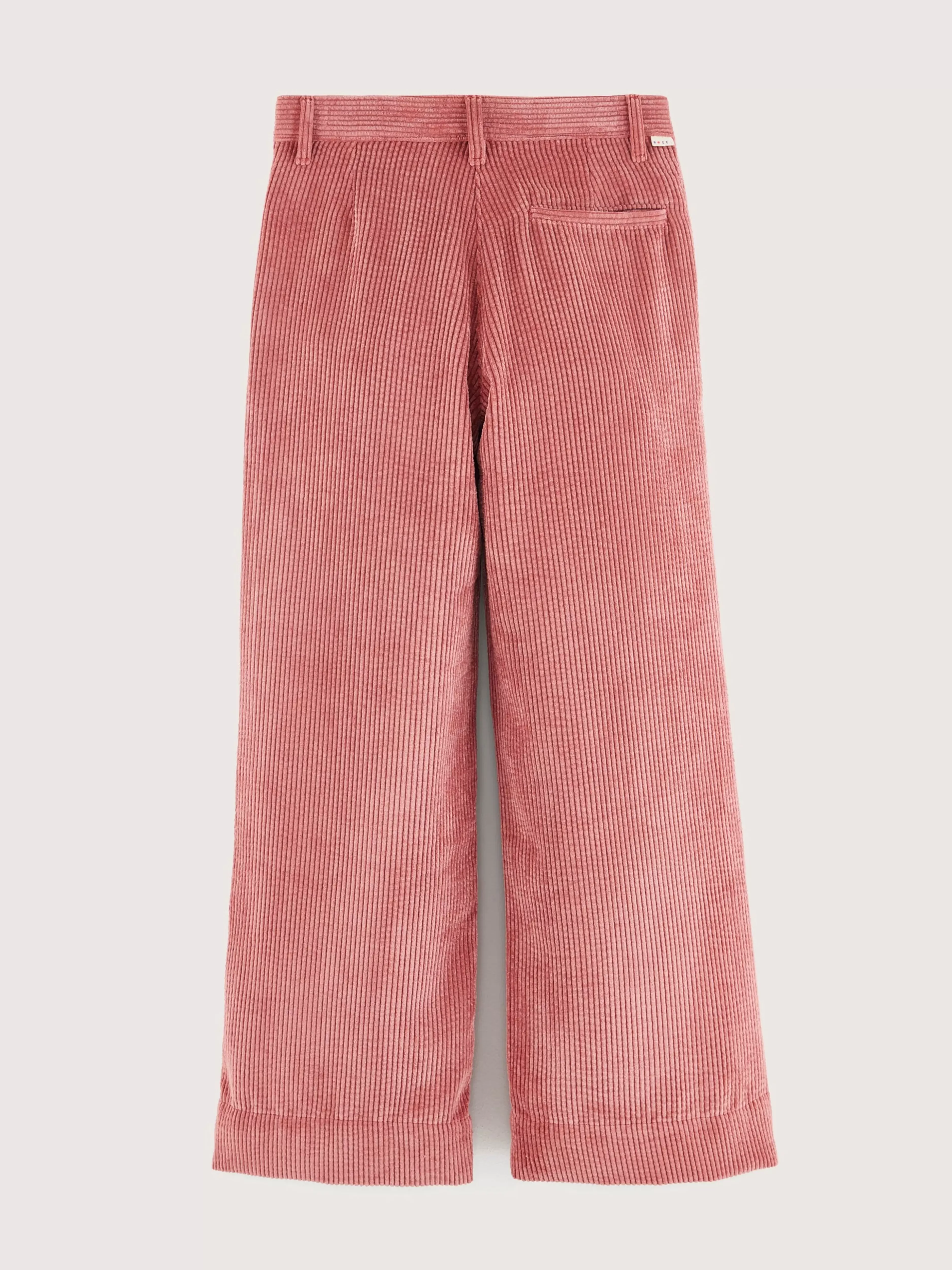 Rozerood broek met tailored fit en hoge taille, van corduroy met brede rib.Relaxed cutMet plooi vooraanWijde pijpenLicht…