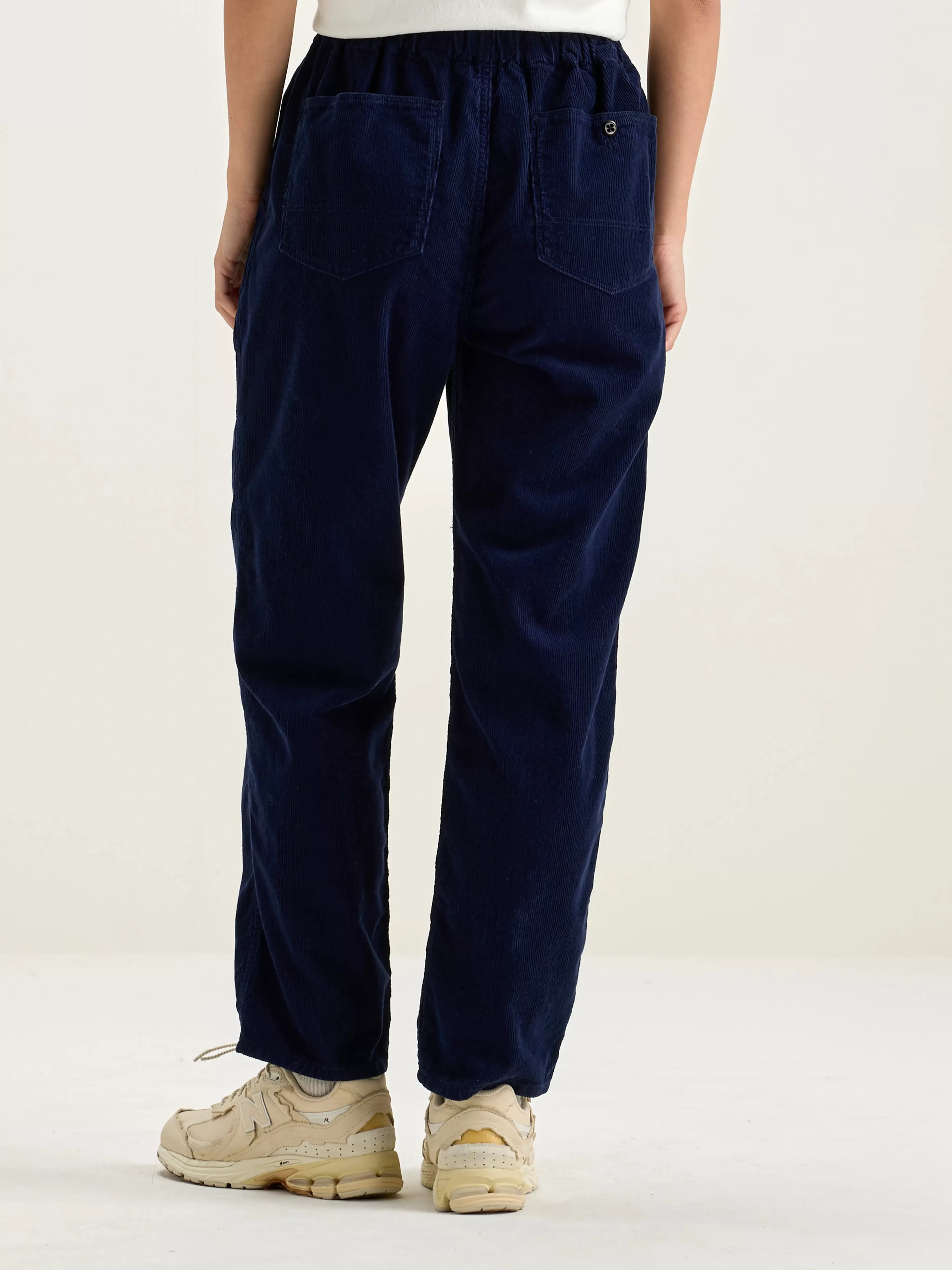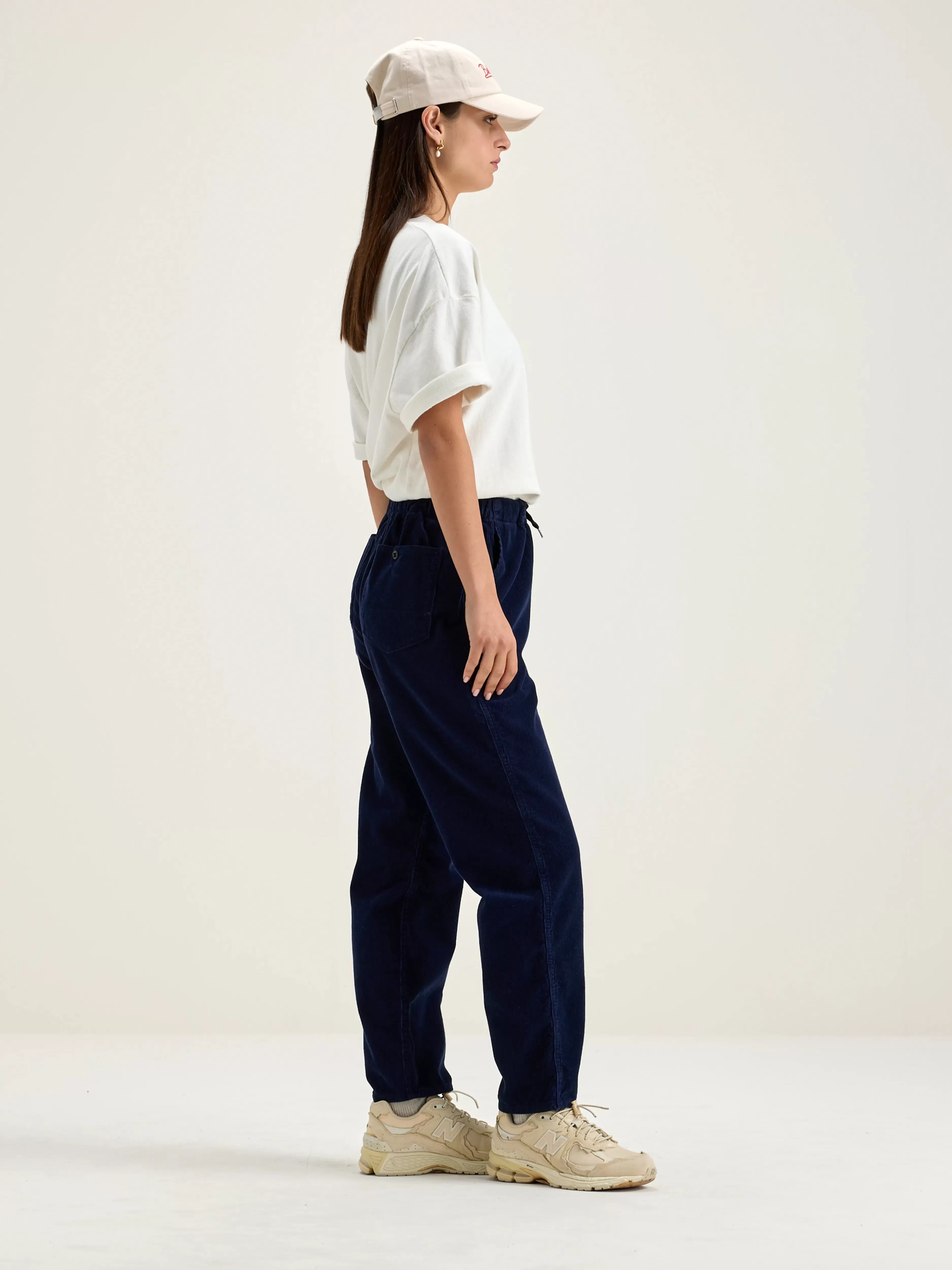 Relaxede marineblauwe broek met een elastische tailleband, van katoencorduroy.